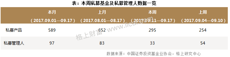 【备案数据】本周新备案证券类产品295只,新备案私募管理人33家