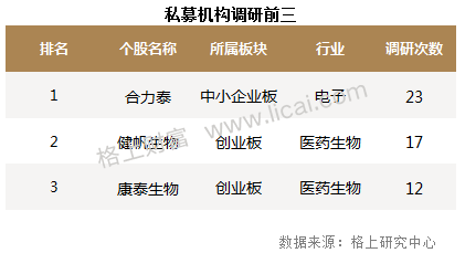 二、阳光私募机构调研动向:中小板持续被追捧,潜力龙头“合力泰”受关注