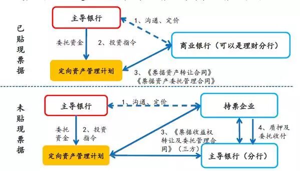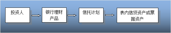 2.1.2、银行理财+信托计划--购买商业银行表内信贷资产或票据资产:银行通过银行理财产品募集投资者资金投资某信托计划,信托计划购买银行表内信贷资产或票据资产,从而实现扩大信贷规模的目的。