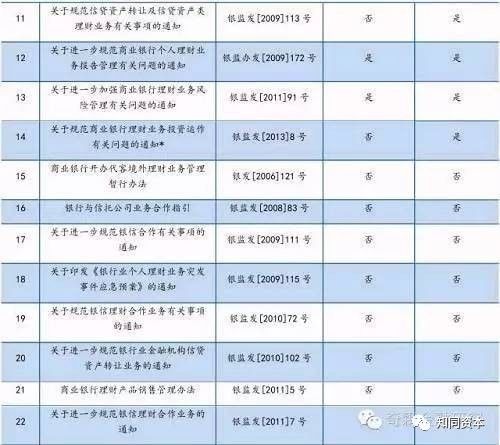 1、现有理财业务监管规则有哪些? 1.1、根据民生证券研究院的整理,从 2004 年商业银行理财业务诞生以来,银监会共出台 29 部相关文件/征求意见稿对其进行监管,内容囊括理财业务的资格准入、投资方向、风险管理、操作规范等各个方面。具体列表如下:一、银行理财产品
