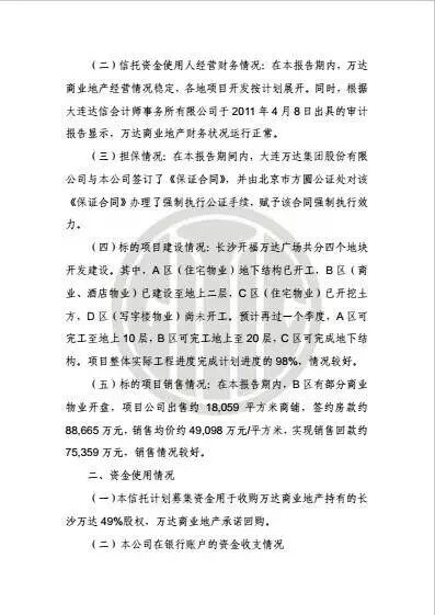 风控措施:大连万达商业地产股份有限公司承诺回购,并将长沙开福万达广场投资有限公司 51% 股权质押给我司作为对其回购及支付义务的担保,大连万达集团股份有限公司同时提供连带责任保证。