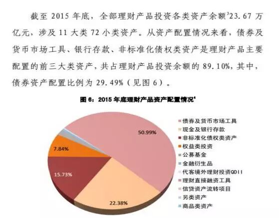 1.3、根据全国银行业理财信息系统统计发布的中国银行业理财年度报告(2015)显示,上述三种最终资产将近占据了银行理财产品投资余额的 90%。