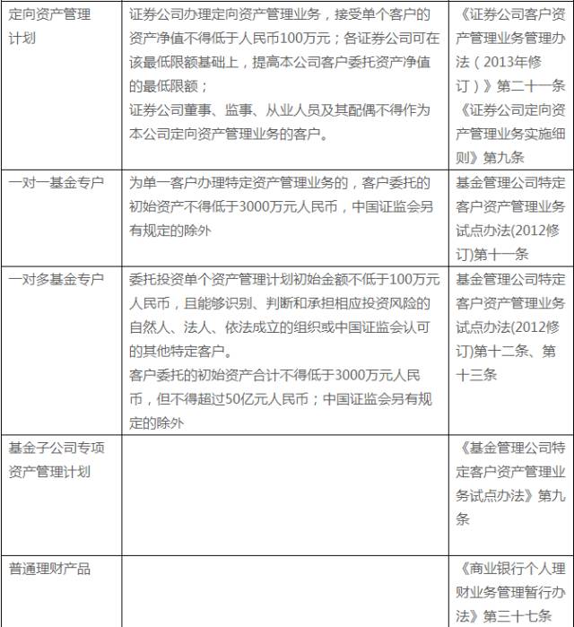 1.2、不同产品对合格投资者的规定