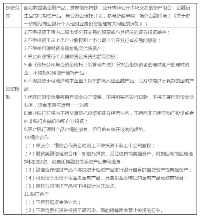 1.2、银行理财的投资范围与投资限制