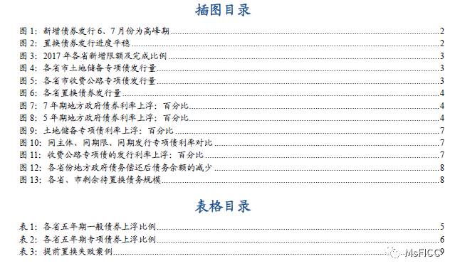 来源:作者:李云霏 来源:MsFICC 截至三季度末地方政府债券发行达到1.46亿新增债券和2.14亿置换债券,整体供给节奏较上年放缓。 按照2017年地方政府新增债券16300亿计划发行量估计,三季度末这部分债券发行已完成88.3%,进度快于前年同期的70.7%,低于去年同期的96.4%,上半年偏紧的资金面一定程度上对新债发行节奏造成冲击响,6、7月份市场环境的边际改善带来发行高峰,两个月时间共完成全年61.5%的发行量。 置换债券方面,假设今年到期的存量政府债券选择到期偿还,则置换规模约为27586亿元,前三季度已完成75.9%,进度较为平稳,置换进度略慢于去年同期。 江苏新增限额最多,半数省(市)发行量已接近新增限额额度。截止三季度末共27个省(市)公布了2017年的地方政府债务新增限额,经济强省江苏、广东、山东分列前三,其中江苏省限额超过1000亿。以目前搜集的新增限额为准,13个省市的新增债券发行量已达到本年额度的95%以上,其中湖南、浙江、山东、厦门、宁波已达上限。(由于各省债务预算可调整,部分省市发行完成度可能超过100%) 5月、6月财政部协同相关部门依次推出土地储备专项债、收费公路专项债,意味着专项债券的管理逐步细分化。7月份北京市率先发行90亿土储专项债,8月份则由广东、海南的两只省本级收费公路专项债拉开此类债券的发行序幕。 截至三季度末土地储备专项债发行总量达1589.5亿,其中江苏发行量最高,达370亿;收费公路专项债发行在8-9月达到253亿,其中浙江发行量达130亿,占比过半。 置换债方面,今年以来云贵川地区置换债券发行量最大。前三季度发行量超过1000亿的达到六个省,其中四川、贵州、云南分别发行1685.8亿、1634.9亿、1355.9亿,在全国处于领先地位;发行量小于100亿的有四个省(市)包括厦门、宁夏、上海以及青岛,其中厦门2014年底待置换债务规模仅为297亿,在2015-2016年间完成了340.1亿的置换债发行(其中可能包含了部分政府性债务),故2017年至今未发行置换债券。 地方政府债券的发行定价主要以同期限国债为参考基准,从2017年发行利率较基准上浮来看,其利差波动整体表现为流动性溢价主导:2017年上半年利差在资金面持续偏紧的环境下与同期国债收益率(基准)同步上行,6月后监管态势逐渐清晰、实际资金面以及预期边际改善,地方债利差与基准再次同步下行;而从单个地方政府的债券发行来看,也能发现利差偏高的发行期集中于5月、6月,之后利差下行较为明显(见表1)。 另一个佐证政府债券利差中风险溢价偏低的事实是,理论上专项债券的偿债资金来源较高的波动性(主要是土地出让收入)决定了其利差应该高于一般债券,后者的偿债资金取自稳定性更高的公共财政收收入,但从价差的实际波动趋势来看,大部分时间专项债券与一般债券的市场定价差异是极小的,不同口径的收入对于债务偿付的保障度并未明显区分开来。 虽然整体上地方债的利差变化由流动性溢价主导,但将观察区间缩短,具体到各个发行主体,风险溢价的体现通过地区间的成本差异略有显现。一定程度上实现了政府财力与融资成本的负相关关系。 以5年期的一般债券为例,较基准上浮偏高的省份集中在内蒙古(上浮比例平均为16.5%)、黑龙江(15.7%)、宁夏(14%)等欠发达地区,浙江、北京、广东等经济发达地区,政府融资优势较为明显。但也看到辽宁、山西等传统意义上受过剩产能拖累的省份其政府债券利差是偏低的,真正全面的风险定价在地方政府债券当前的供需格局下可能还未实现。 专项债发行中,土地价值的波动会通过偿债资金的安排反映到债券的信用利差,而房地产带动的土地出让收入较税收收入有更为明显的区域差异,因此从债券融资成本来看,传统意义上房地产开发前景稳定的地区如北京、浙江、上海、广东等地区,政府专项债的利差(上浮不超过6%)是明显低于同期发债的其他地区的,东三省地区、宁夏、新疆、云南、贵州等地的专项债利差(超过12%)则在同期明显高于其他地区。 虽然土地储备专项债、收费公路专项债新上市不久,但在地方政府专项债的大范畴内,资金用途以及偿债资金来源严格限定在政府性基金的收支口径内细分管理,因此从定价角度看应与普通专项债无差别。 实际上,从目前尚且不多的发行案例看,土储专项债的发行与同日、同主体、同期限的普通专项债对比,两者的利差并没有呈现规律性的孰高孰低。 然而对比同一主体发行的收费公路专项债,发现其利差要明显高于土储专项,山西省发行的收费公路专项债利率上浮13.4%,土储债的上浮仅1.8%,宁波市收费公路专项债利率上浮较土储债高出11个百分点。考虑到两类债券发行时间集中于三季度,资金面并未出现较大的扰动,因此可以认为中间的价差由信用风险溢价构成,反映了市场对于收费公路项目的未来现金流的预期并不如土地出让乐观。 从债务置换的进展看,2015年以来更多地方政府选择了置换的同时偿还一部分存量债务以降低债务率,其中发达地区如京、沪、粤三地,2015-2016两年的时间内分别实现待置换债务减少3317.5亿、2033.0亿和1253.7亿,占2014年当地的债务余额52%、35%和14.2%。具体看各地实际偿还占比,另外有宁波市(23.2%)、青海省(18.2%)、甘肃(14.2%)等地区也有较高的偿还比例,而湖南、宁夏、厦门等地区的存量债务并未出现自主偿还,在2015-2016均是安排全部置换。 综合考虑截至2017年三