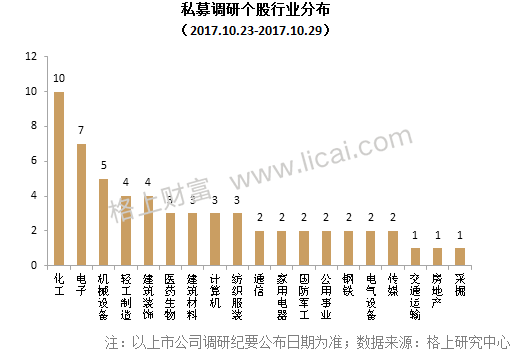 格上研究中心统计发现,本周私募机构调研热情有所回暖,调研上市公司59家,环比上周(21家)上升180.95%。私募机构关注的板块方面,中小板独自以54.24%的关注度占据半壁江山,主板和创业板关注度相对平均,分别是22.03%、23.73%。行业方面,本周关注度最高的是化工行业,有10只个股被关注,其次是电子和机械设备,均有5只以上的个股受关注。