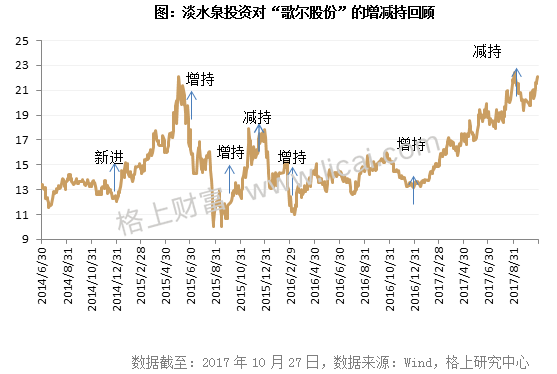 作为淡水泉持股时间最久的“歌尔股份”,淡水泉一直对它给予了高度关注,今年以来调研了五次,仅10月份就调研了两次,一次是10月20日,另一次是10月24日。而在“歌尔股份”刚刚公布的三季报中,格上研究中心发现淡水泉三季度对该股进行了减持。减持时点符合淡水泉投资一向的投资理念——逆向投资。