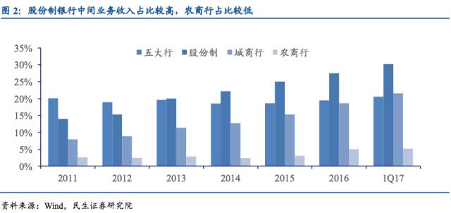 来源:民小银(微信号reform_finance) 作者:民生证券银行研究 整理:轻金融一、概述:占比逐年提升,股份行中收领先中间业务相对传统的息差而言资