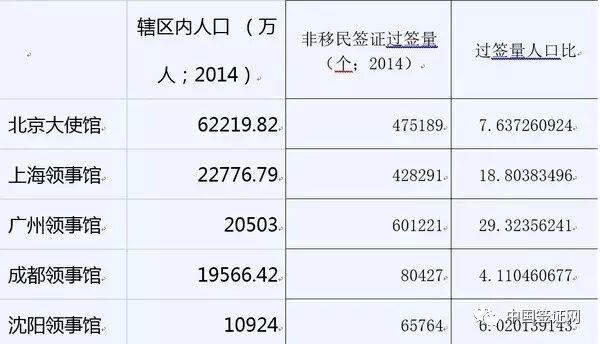 1、首先,从以上图表的数据来看,每个辖区的人口是不一样的。过签的概率也是不一样的。广州领事馆的过签率高高在上,上海领事馆紧随其后。北京和沈阳相对较低,成都低的惨不忍睹。