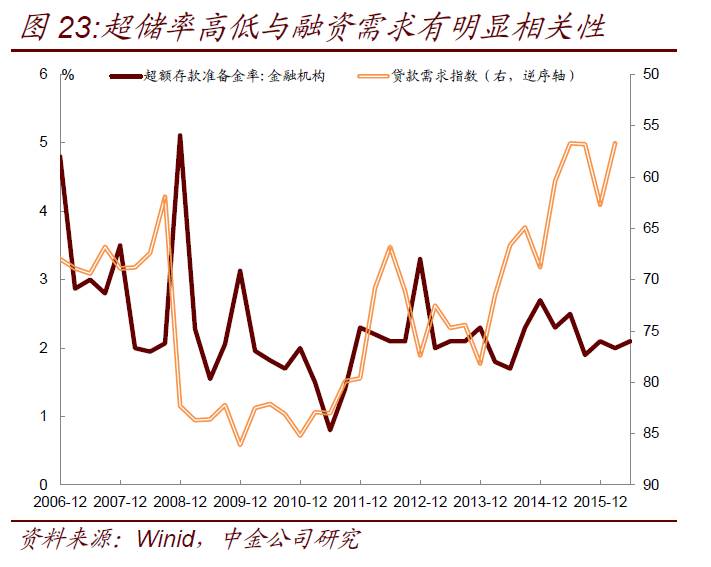在同业业务受到约束的情况下,银行依然需要谋发展,资产负债表依然需要扩张来支持实体经济,这样倒逼银行只能回归传统的表内存贷款业务。但传统的存贷款业务受到的限制也是比较大的。比如贷款业务,会受到行业政策限制、严格的授信、资本充足率和拨备覆盖率计提,而存款需要缴纳法定存款准备金,会导致货币乘数比较低。尤其是目前为了去杠杆,超储率保持在较低水平,传统的存贷款业务会明显受制于较低的超储率。狭义流动性不放松,广义流动性就无法扩张(图23)。