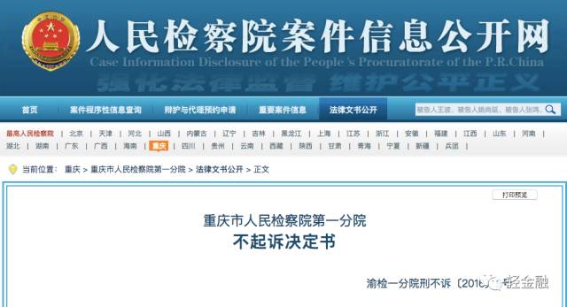 2016年12月,重庆市人民检察院第一分院发布“被告人王某、被告人姚某某等涉嫌对非国家工作人员行贿罪、非国家工作人员受贿罪、挪用资金罪 、诈骗罪一案”起诉书和不起诉书,
