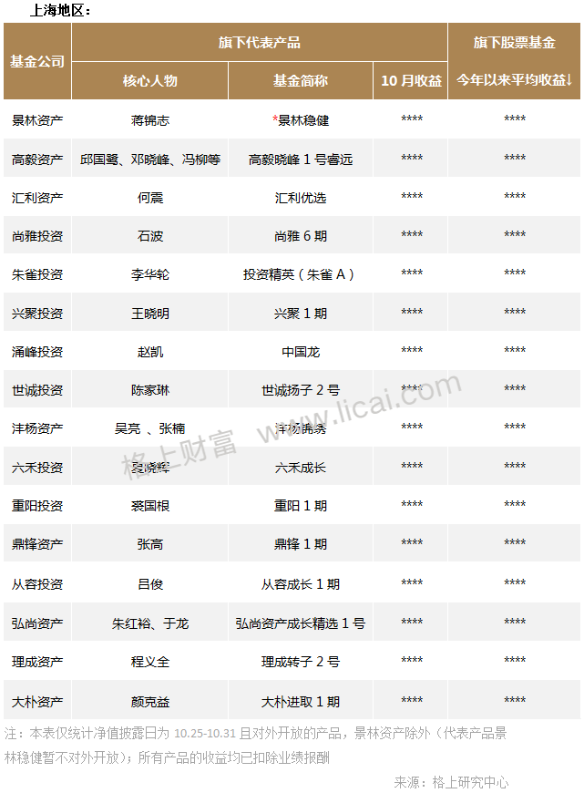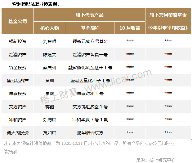 就代表产品10月单月收益来看,倚天阁资产、领新投资均取得了不错的收益,其中倚天阁资产旗下的鹏华信合东方月度收益超过2.5%,位列第一。从今年以来旗下套利策略产品整体来看,表现最好的是领新投资,旗下套利策略基金今年以来的平均收益为15.86%。