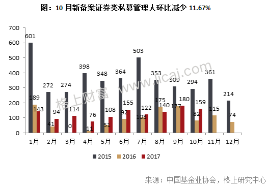 据基金业协会最新数据显示,今年10月份新备案证券类私募管理人159家,环比减少11.67%。
