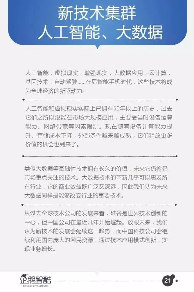 近日,腾讯科技•企鹅智酷联合63位互联网行业领袖与专家发布了《企鹅智酷中国科技&互联网创新趋势白皮书(2017)》,预测了未来5年的中国互联网发展趋势。