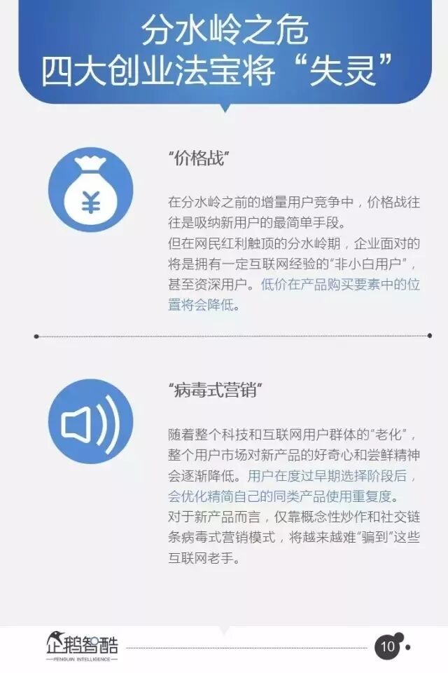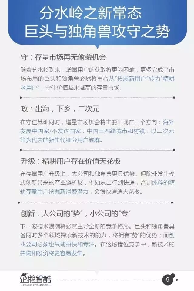 仔细阅读报告,就能发现中国互联网未来的发展趋势,思考如何才能在分水岭期活下来。