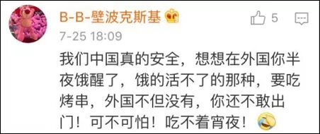 此前,在美国留学的中国学生微博博主@马克Malik曾经有感于最近中国留学生在海外遇害的事情频发,于7月25日发了一段视频,感叹道:“中国真的非常安全”。
