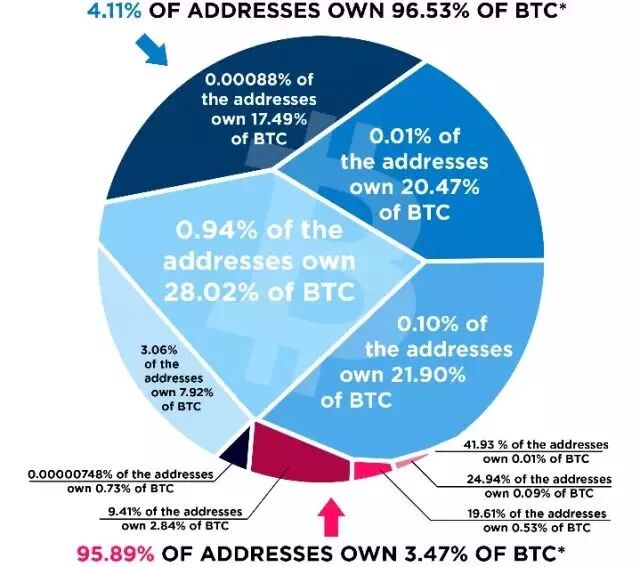 96.53%比特币, 被仅占总量4.11%的地址所控制。
