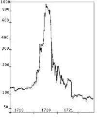 1636年底,南海股价为1.8英镑每股,1720年其最高股价每股1000英镑,涨幅600倍左右。