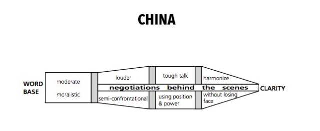 他们怎么做生意?Lewis经过大量研究,得出在全球贸易过程中,跟不同客户的沟通模式图和说明。