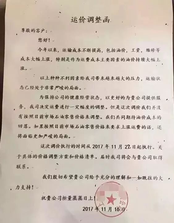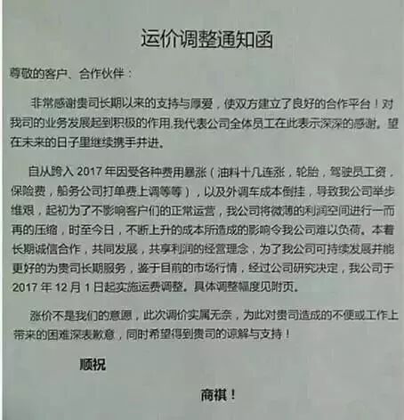 运价上涨通知