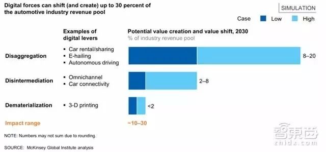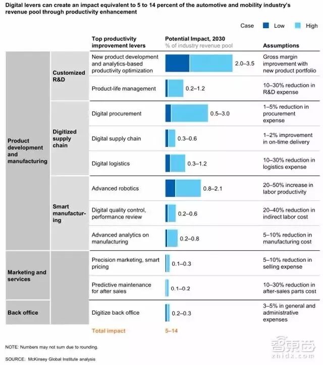 ▲数字化带来的生产力提高将影响5%到14%的汽车和移动利益池