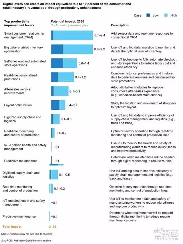 ▲数字化带来的生产力提高将影响3%到10%的消费和零售利益池