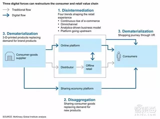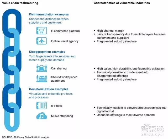 为量化数字经济的价值,麦肯锡提出了数字化带来的三类价值链重组: