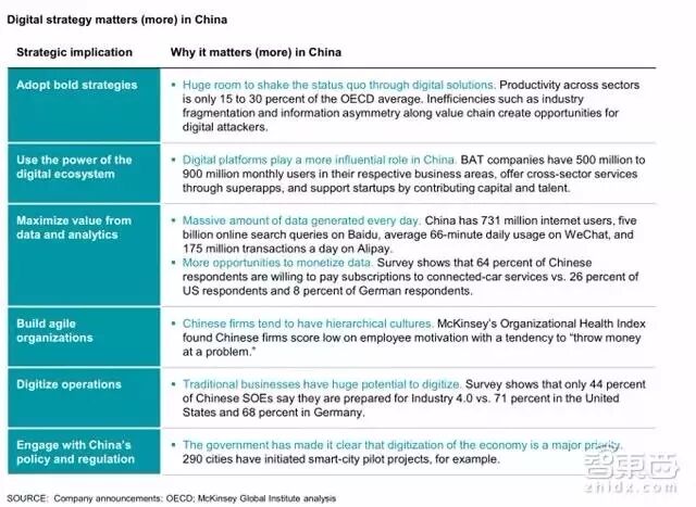 庞大的受众池,BAT强势引领的数字产业生态圈,加上大力推动前沿技术的投资和应用,导致中国的数字化潜力远超许多关注者的预期。