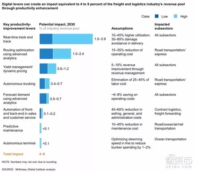 ▲数字化带来的生产力提高将影响4%到9%的货运和物流利益池