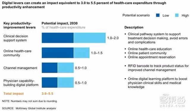 ▲数字化带来的生产力提高将影响3.0%到5.5%的医疗健康利益池