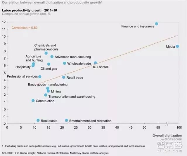 ▲中国各领域的生产率增长与整体数字化呈正相关