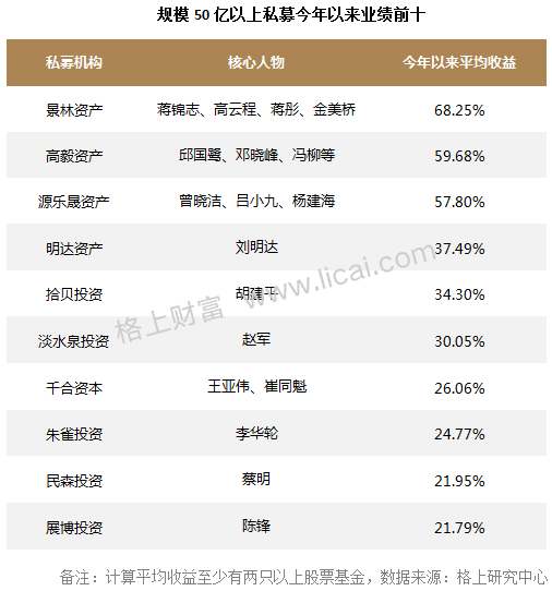 50亿以上私募前十名平均收益38%,景林资产以68%夺冠