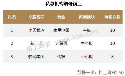 二、阳光私募机构调研动向:私募调研热情持续下滑,“小天鹅A”与“新北洋”备受关注