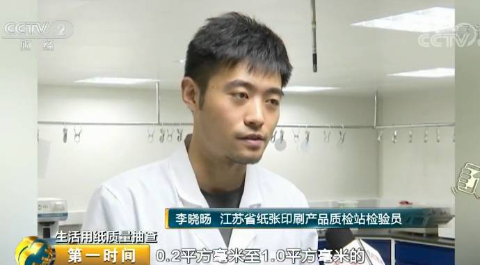 江苏省纸张印刷产品质检站检验员 李晓旸:国家标准规定,卫生纸产品每平方米(单位面积上),0.2平方毫米至1.0平方毫米的,小尘埃不应大于200个,本次监督抽查共有5批次卫生纸产品出现了尘埃度不合格的情况。