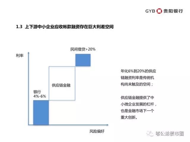 对于供应链金融的市场风险、利率风险,在当前环境下存在天然优势。从上下游企业获取核心企业应付账款、差补应收账款等,利率在6-15%不等,与AAA级资产成本之间有数百个点差,足以应对相当市场风险的压力测试。