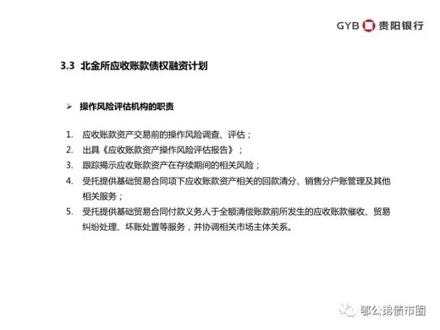 北金所模式的亮点,一是立足核心企业和银行主承,这体现了务实性,便于宏观上控制风险;二是引入操作风险评估服务机构,即保理公司,这是撬动应收帐款市场的支点。
