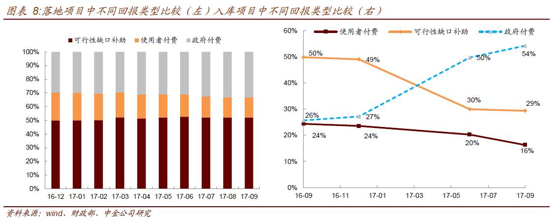 (1)政府付费类项目受限,更多的项目采用可行性缺口补助或者使用者付费的回报模式;
