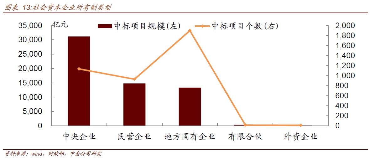 (2)央企作为社会资本方参与PPP受限,未来更多的可能仅做为施工企业参与项目建设;但地方国有企业在PPP中扮演的角色可能逐步上升,成为参与PPP项目建设重要的社会资本方;
