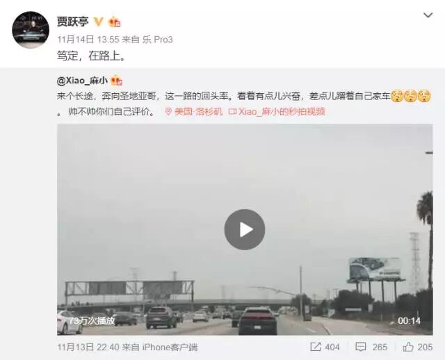 自11月14日转发网友微博称“笃定,在路上”之后,贾跃亭的微博已沉寂一个多月。