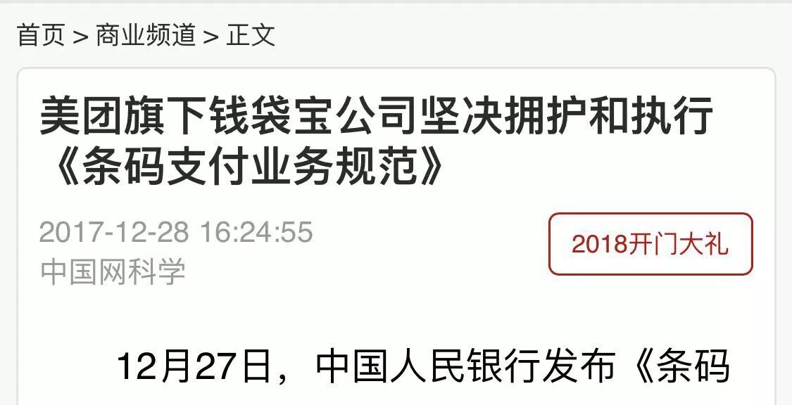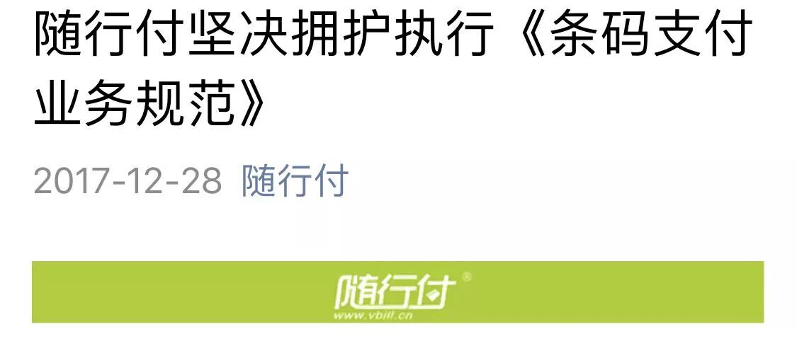 对此支付宝、微信、银联商务、拉卡拉、美团、壹钱包、新生、随行付均积极拥护,认同央行规范,同时研发新技术以及探索新技术应用于条码支付领域的可行性。
