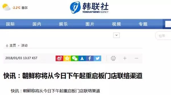 这是韩朝时隔1年11个月恢复联络渠道,韩朝板门店渠道于开城工业园区停运的2016年2月切断至今。