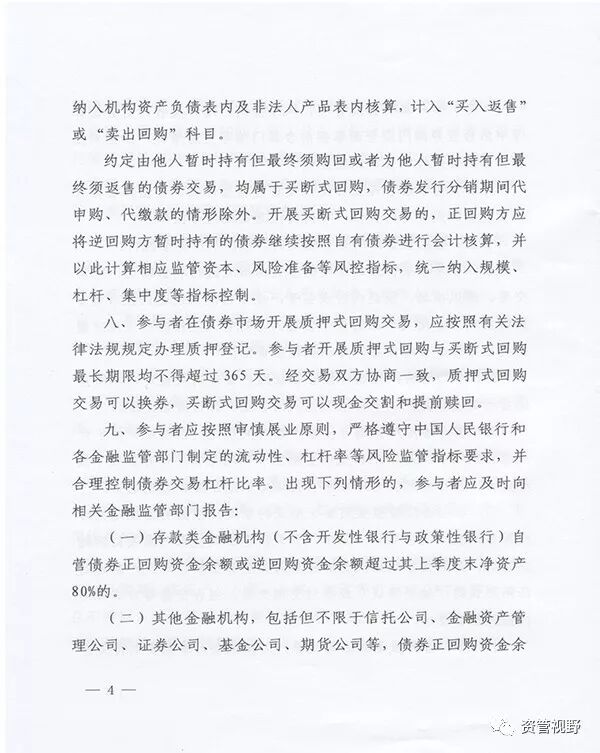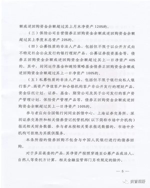 (2)其他金融机构,包括但不限于信托公司、金融资产管理公司、证券公司、基金公司、期货公司等,债券正回购资金余额或逆回购资金余额超过其上月末净资产120%的。