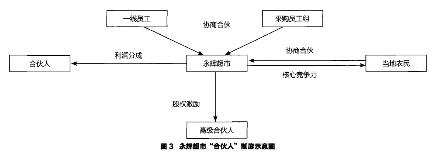 由于买手们熟悉村镇的情况,又对菜品的各种特征了如指掌,这使得他们的工作非常容易开展,但同时,这也容易导致买手们被其他企业所觊觎、以更高的薪水挖走。因此,永辉面临的最重要的问题就是保证买手团队的稳定性。对于买手团队,永辉做的就不仅仅是合伙人制度了,永辉将合伙人制度跨上了一个新台阶,通过合伙人制,向买手们发放股权激励,借此将他们稳固在企业的周围,这也可以理解为是一种“更高级的合伙制”。