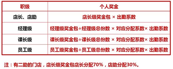 门店奖金包上限:门店奖金包≥30万时,奖金包按30万元发放