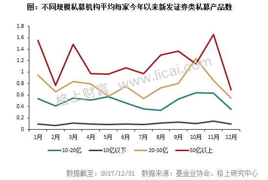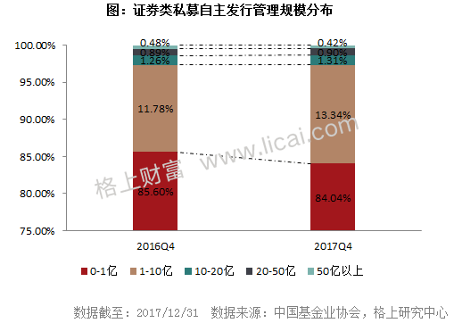 2017年证券类私募顾问管理规模中枢整体下移,自主发行规模向中部集中