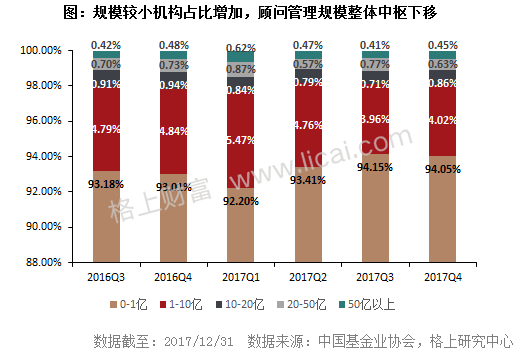 二、2017年证券类私募顾问管理规模中枢整体下移