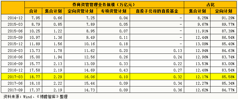 从数据上来看,券商资管业务规模约17万亿元以上,自17年一季度开始已经明显下降,从18.77万亿元左右降至17.37万亿元,预计2017年底应在16.50万亿元,而占比较高的定向计划也在逐步调整,目前比例已降至85%以下,在一系列监管政策的约束下,后续还会继续下降,因为这部分业务主要为通道类业务,如果按照25-30%的比例来算的话,约有3-4万亿元左右投向了委托贷款和信托贷款,影响还是明显的。