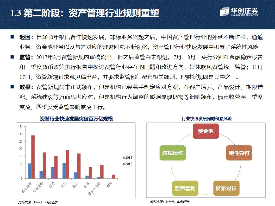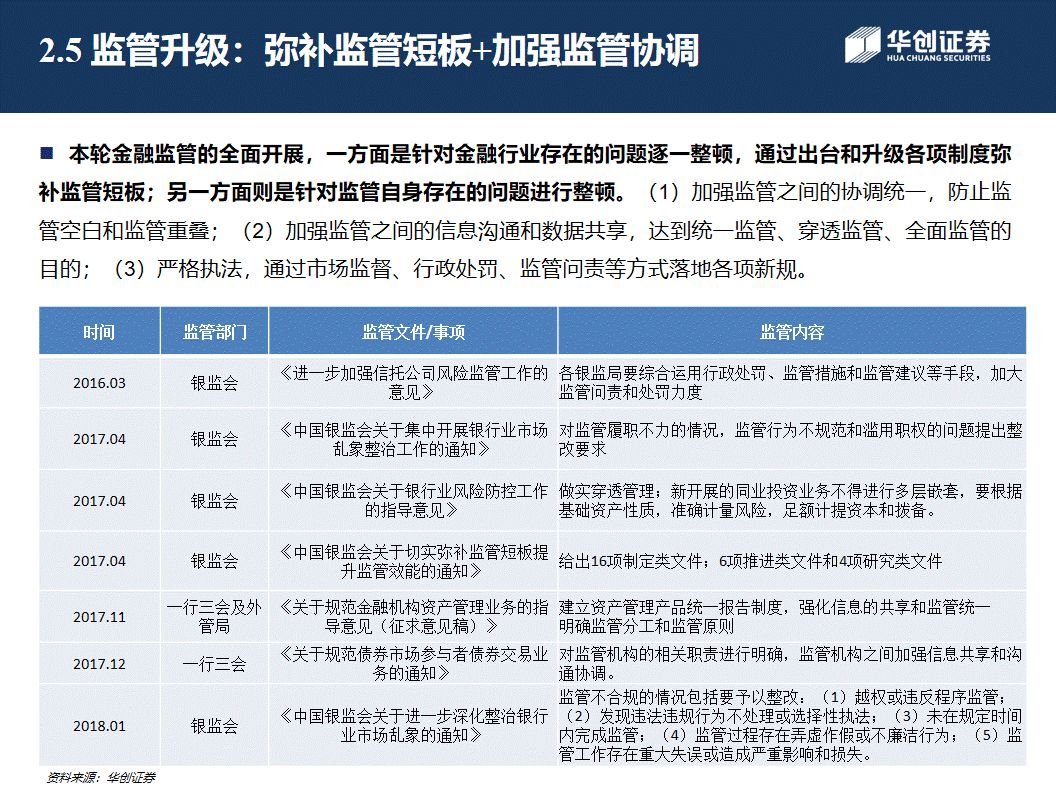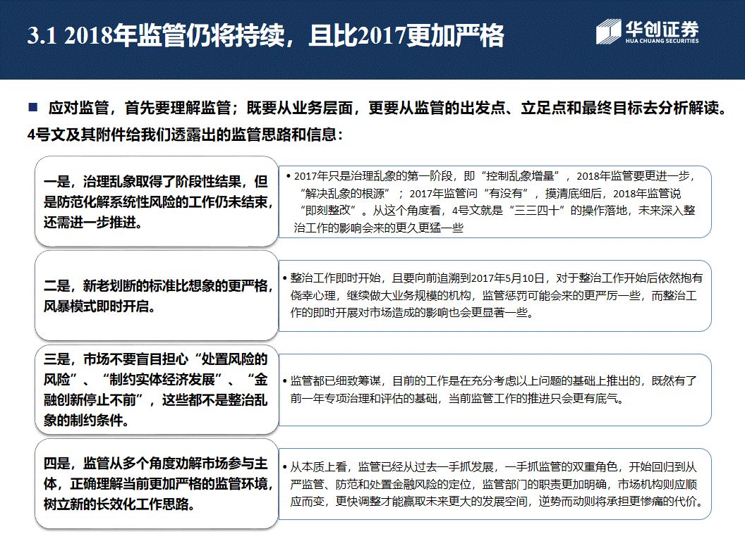 编者语:本文为2018年华创债券金融监管年度报告,全文从以下三个方面展开,分别是本轮金融去杠杆监管推进的三个阶段、金融监管思路及对机构业务