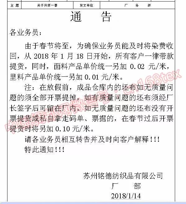 停汽!停排!吴江、绍兴印染企业开启放假模式:拒收坯布、带款提货!客户们,别再催单了!