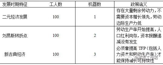 2003年之前,中国经济增长符合典型的二元经济模型:我们有无限供给的劳动力,农村剩余劳动力转移到城市,劳动力可以不断增长,不是经济增长的制约因素。这时我们只需进行资本积累。我们可以假设,这时是100个工人对应一台机器。